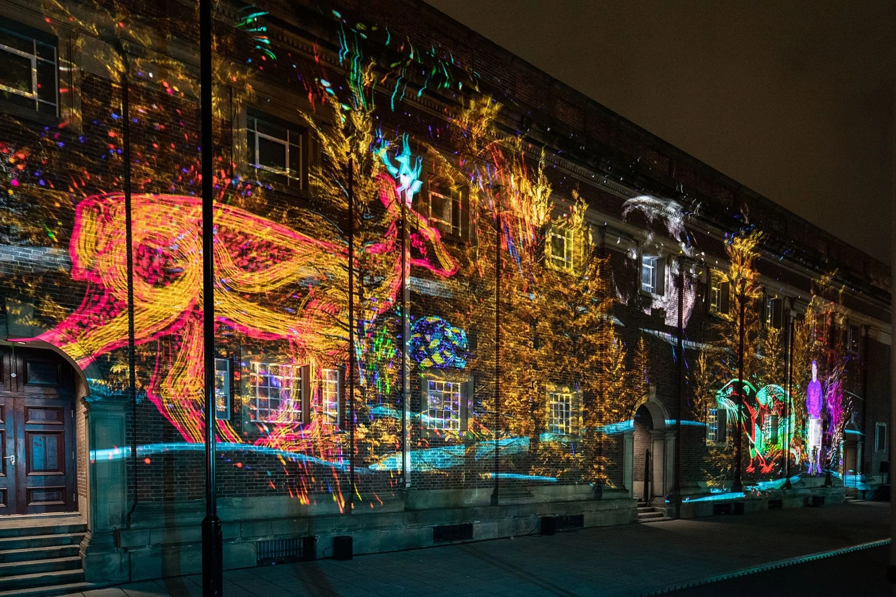 A magical interactive projection invites you on a journey from the undulating dunes of Northumberland to the deep, dark forests of Kielder. Become part of the artwork as playful gestures cause local landscapes to become populated with wild flora and fauna.